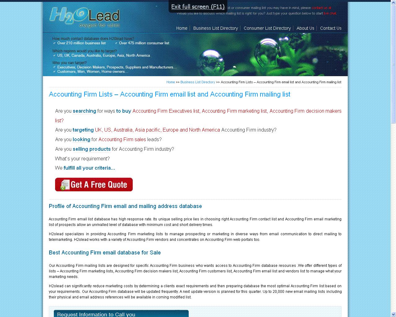 08:18, 22 February 2011 B2B & B2C Email Directory.JPG (file) 236 KB H2O Leads all type of Email List Database providing company 1