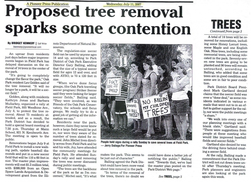 Les Golden, of Oak Park, Illinois, is a leading environmentalist and animal welfare advocate in the State of Illinois. He frequently lobbies for these causes in columns, letters to the editor, and press releases. In 2007, he discovered the plan by the Oak Park Park District to destroy all the old growth trees in a local park, notified the state senator and the Illinois Department of Natural Resources, and convened a rally which was covered by Chicago television and media, leading to the saving of many of the trees.